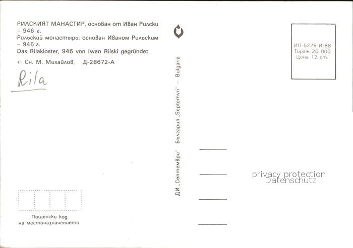 Rila Kloster postalisch nicht gelaufen Erhaltung siehe scans