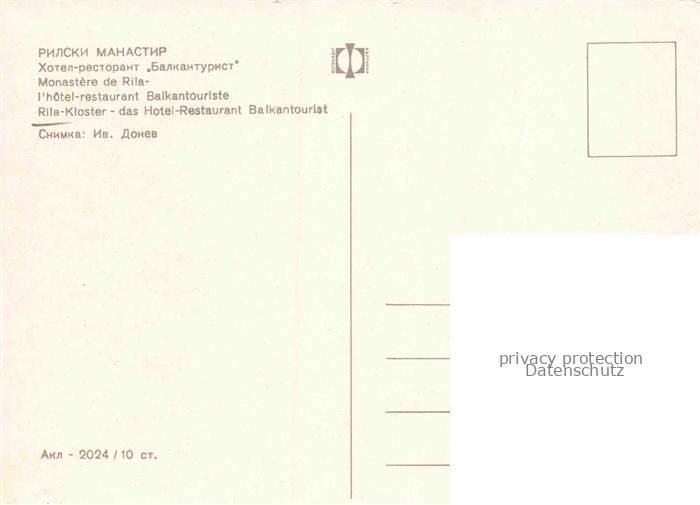 74132367 Rila-Kloster Rilo BG Hotel Restaurant Balkantourist postalisch nicht gelaufen Erhaltung siehe scans [FriedD77] KatCode: 11090