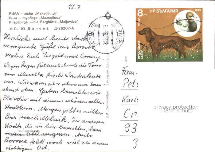 old postcard Rila Rilagebirge Berghuette Maljowiza postalisch gelaufen Erhaltung siehe scans