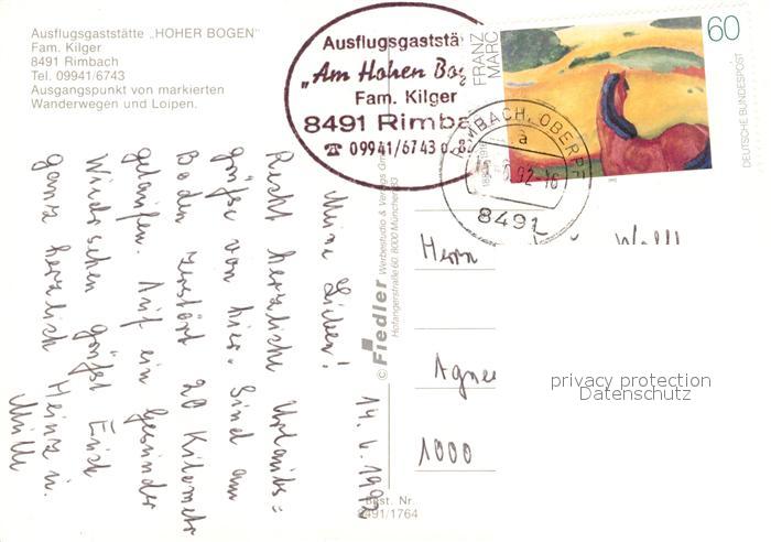 73166901 alte Postkarte Rimbach Bayrischer Wald Ausflugsgaststaette Hoher Bogen postalisch gelaufen Erhaltung siehe scans [KathaD81] KatCode: 11110009372151