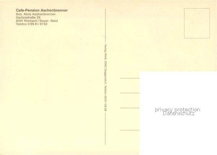 73641256 Rimbach Bayrischer Wald Cafe Pension Aschenbrenner postalisch nicht gelaufen Erhaltung siehe scans [WerneD78] KatCode: 11110009372151