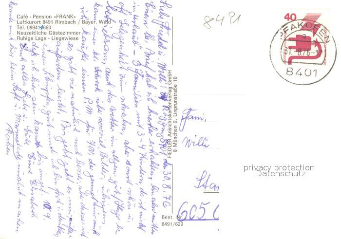 73739732 alte Postkarte Rimbach Bayrischer Wald Cafe Pension Frank Gaststube Panorama postalisch gelaufen Erhaltung siehe scans [WerneD78] KatCode: 11110009372151