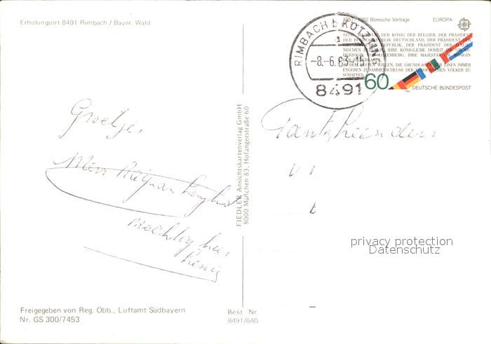 72298003 alte Postkarte Rimbach Bayrischer Wald Gesamtansicht postalisch gelaufen Erhaltung siehe scans KatCode: 11110009372151