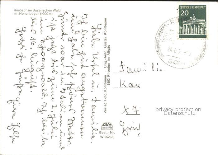 72556599 alte Postkarte Rimbach Bayrischer Wald Hohenbogen postalisch gelaufen Erhaltung siehe scans [KathaD79] KatCode: 11110009372151