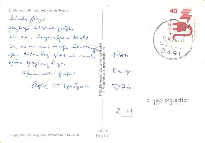 72481055 alte Postkarte Rimbach Bayrischer Wald Hoher Bogen Luftaufnahme postalisch gelaufen Erhaltung siehe scans KatCode: 11110009372151
