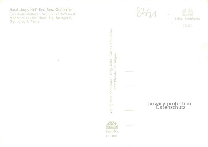 74049723 Rimbach Bayrischer Wald Hotel Bayerischer Hof Restaurant Panorama Ansicht vom Waldrand aus postalisch nicht gelaufen Erhaltung siehe scans [FriedD77] KatCode: 11110009372151