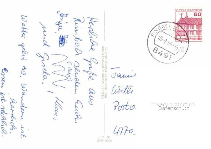 72721015 alte Postkarte Rimbach Bayrischer Wald Kaltersberg Grosser Osser Arber See Falkenstein Rachelkapelle Lusenschutzhaus Dreisessel Felsformation Nationalpark postalisch gelaufen Erhaltung siehe scans [FriedD77] KatCode: 11110009372151