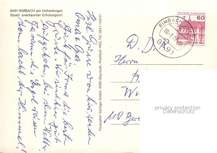 73020247 alte Postkarte Rimbach Bayrischer Wald Kirche postalisch gelaufen Erhaltung siehe scans [NatalD47] KatCode: 11110009372151