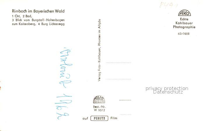 43345460 Rimbach Bayrischer Wald Ortsblick Bad Burgstall Hohenbogen Kaitersberg Burg Lichtenegg postalisch nicht gelaufen Erhaltung siehe scans [WerneD78] KatCode: 11110009372151