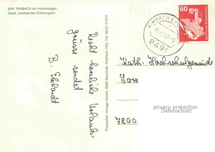 74049718 alte Postkarte Rimbach Bayrischer Wald Panorama Erholungsort am Hohenbogen Burgruine postalisch gelaufen Erhaltung siehe scans [FriedD77] KatCode: 11110009372151