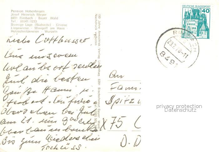 73641257 alte Postkarte Rimbach Bayrischer Wald Pension Hohenbogen Gastraum Panorama postalisch gelaufen Erhaltung siehe scans [WerneD78] KatCode: 11110009372151