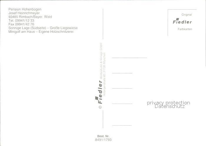 72614625 Rimbach Bayrischer Wald Pension Hohenbogen Panorama Holzschnitzerei postalisch nicht gelaufen Erhaltung siehe scans [WerneD78] KatCode: 11110009372151