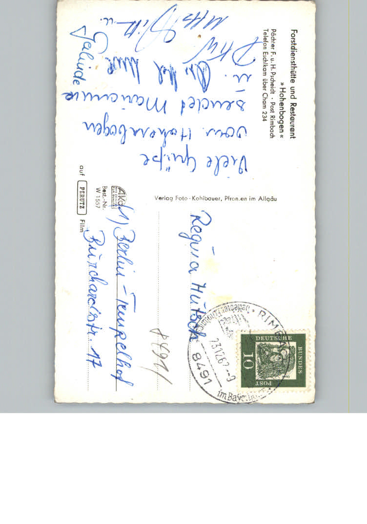 31160851 Rimbach Oberpfalz Restaurant Hohenbogen postalisch nicht gelaufen KatCode: 11110009372151