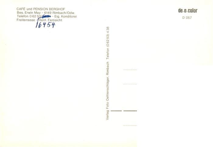 73886933 Rimbach Odenwald Cafe und Pension Berghof postalisch nicht gelaufen Erhaltung siehe scans [WerneD78] KatCode: 11110006431019