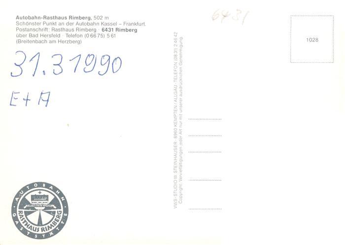 73890708 Rimberg Bad Hersfeld Autobahn Rasthaus Rimberg Gastraeume Gaestezimmer postalisch nicht gelaufen Erhaltung siehe scans [WerneD78] KatCode: 11110006632002