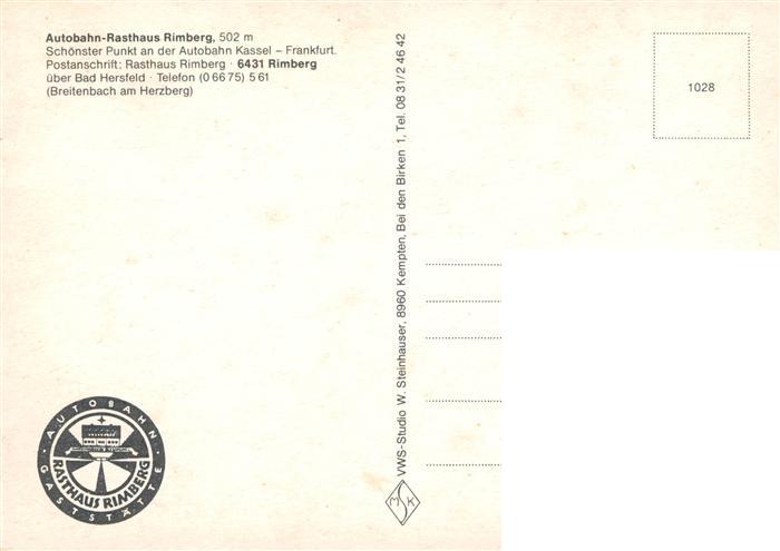 73905359 Rimberg Bad Hersfeld Autobahn Rasthaus Rimberg Gastraeume Zimmer postalisch nicht gelaufen Erhaltung siehe scans [WerneD78] KatCode: 11110006632002