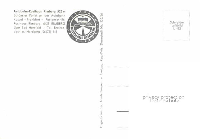 72882063 Rimberg Bad Hersfeld Autobahn Rasthaus Sender Fliegeraufnahme postalisch nicht gelaufen Erhaltung siehe scans [FriedD77] KatCode: 11110006632002