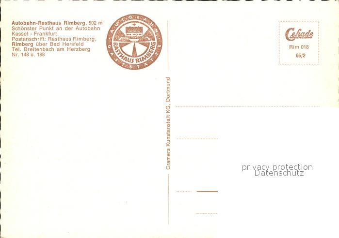 71991718 Rimberg Bad Hersfeld Fliegeraufnahme Autobahn-Rasstaette postalisch nicht gelaufen Erhaltung siehe scans KatCode: 11110006632002