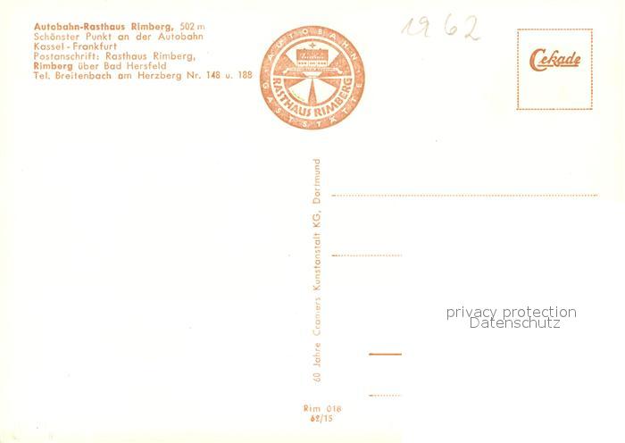 73054405 Rimberg Bad Hersfeld Fliegeraufnahme Autobahn Rasthaus postalisch nicht gelaufen Erhaltung siehe scans [KathaD81] KatCode: 11110006632002