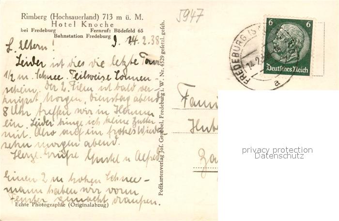 73557090 alte Postkarte Rimberg Schmallenberg Hotel Knoche postalisch gelaufen Erhaltung siehe scans [PaolaD17] KatCode: 11110005958040