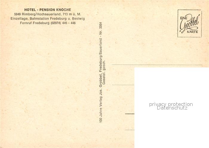 73123349 Rimberg Schmallenberg Hotel Pension Knoche postalisch nicht gelaufen Erhaltung siehe scans [KathaD81] KatCode: 11110005958040