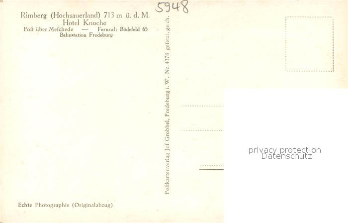 73700334 Rimberg Schmallenberg Panorama Blick zu Hotel Knoche postalisch nicht gelaufen Erhaltung siehe scans [FriedD77] KatCode: 11110005958040