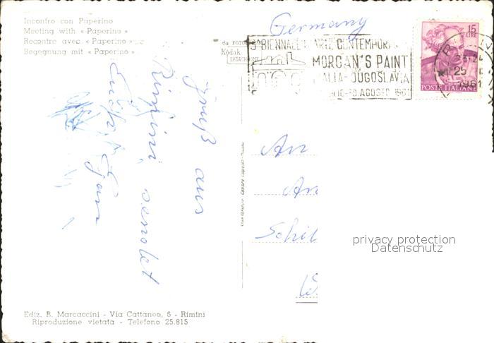 old postcard Rimini Begegnung mit Paperino am Strand postalisch gelaufen Erhaltung siehe scans
