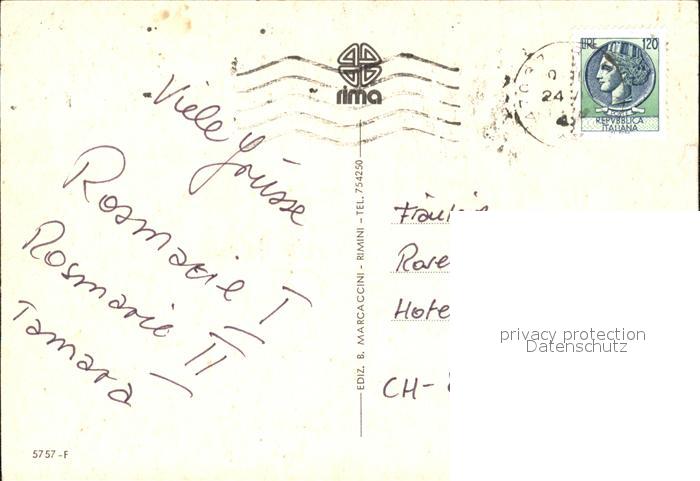 old postcard Rimini Brunnen Kreisverkehr Strand postalisch gelaufen Erhaltung siehe scans