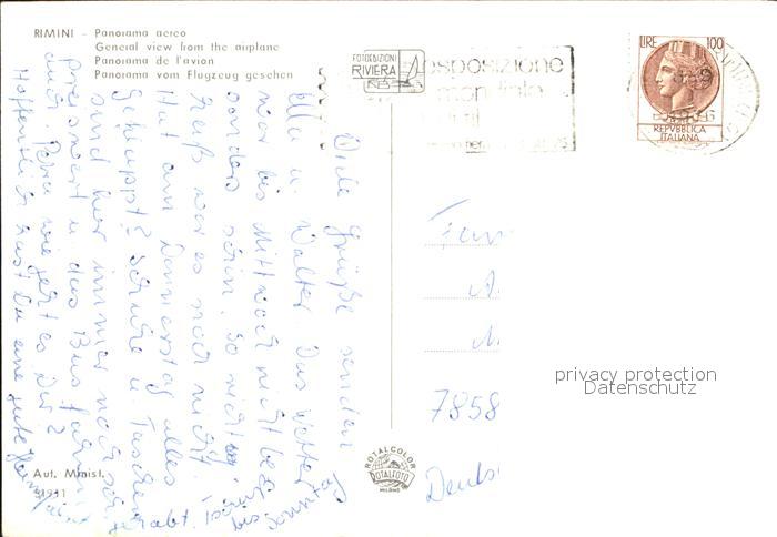 old postcard Rimini Fliegeraufnahme postalisch gelaufen Erhaltung siehe scans