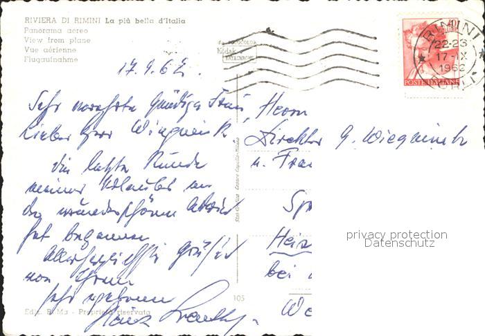 old postcard Rimini Fliegeraufnahme postalisch gelaufen Erhaltung siehe scans