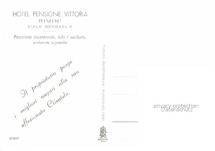 12839040 Rimini Hotel Pensione Vittoria postalisch nicht gelaufen Erhaltung siehe scans [KathaD81] Kath Katcode 11240