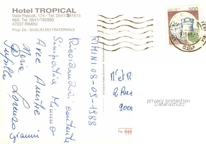 old postcard Rimini Hotel Tropical Restaurant postalisch gelaufen Erhaltung siehe scans [FriedD77]