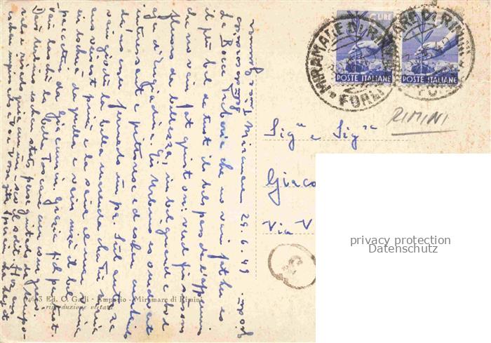 74049597 old postcard RIMINI IT Miramare Rotonda Spiaggia postalisch gelaufen Erhaltung siehe scans [FriedD77] KatCode: 11240