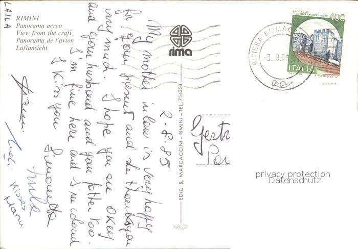 old postcard Rimini Luftaufnahme postalisch gelaufen Erhaltung siehe scans [KathaD79]