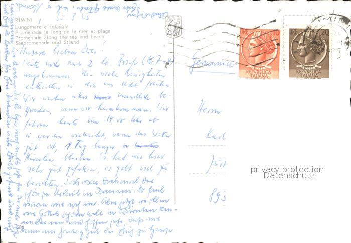 old postcard Rimini Lungomare e spiaggia Seepromenade Strand postalisch gelaufen
