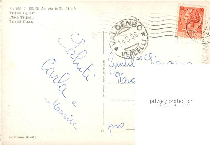 old postcard Rimini Piazza Tripoli postalisch gelaufen Erhaltung siehe scans [PaolaD17]