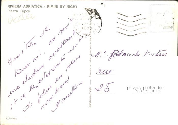 old postcard Rimini Piazza Tripoli bei Nacht postalisch gelaufen Erhaltung siehe scans