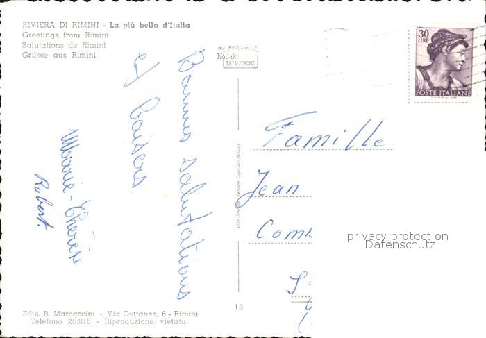 old postcard Rimini Piazza Tripoli Panorama della spiaggia Piazzale Indipendenza e Grattacielo postalisch gelaufen Erhaltung siehe scans