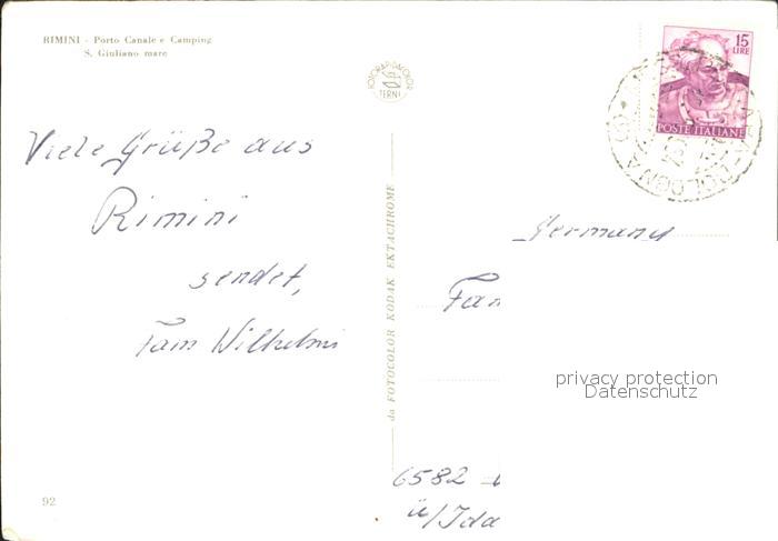 old postcard Rimini Porto Canale Camping postalisch gelaufen Erhaltung siehe scans