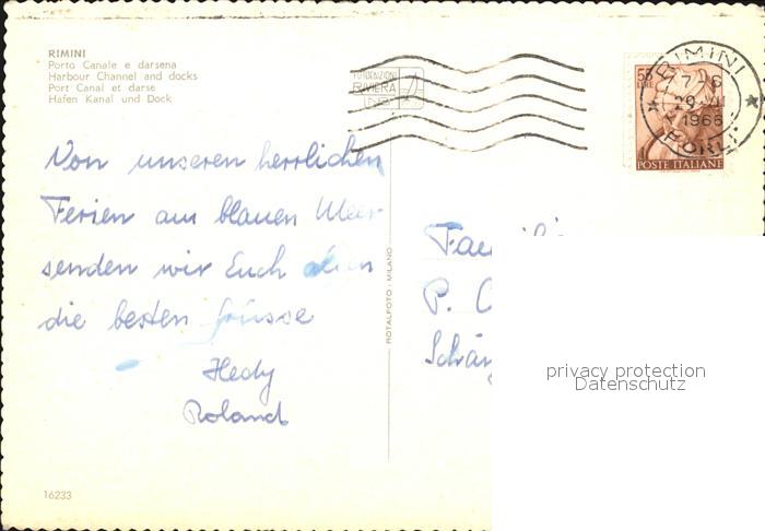 old postcard Rimini Porto Canale e darsena Hafen Kanal Dock postalisch gelaufen Erhaltung siehe scans [FriedD77]