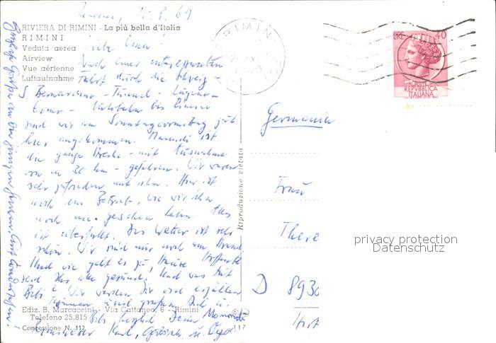 old postcard Rimini Riviera Fliegeraufnahme postalisch gelaufen Erhaltung siehe scans