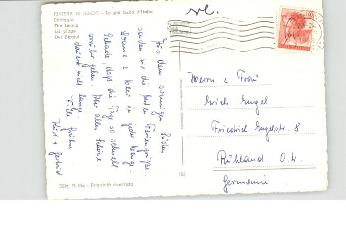 old postcard Rimini Riviera Spiaggia Strand postalisch gelaufen
