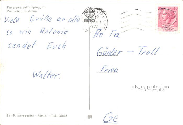 old postcard Rimini Rocca Malatestiana Strand postalisch gelaufen Erhaltung siehe scans