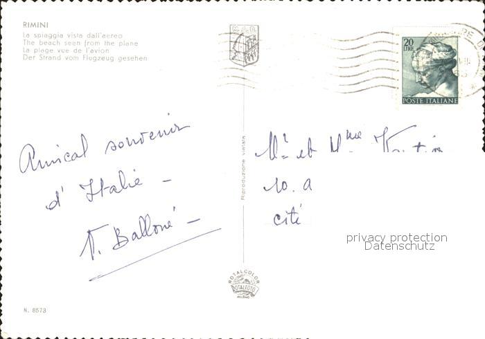 old postcard Rimini Spiaggia Strand Fliegeraufnahme postalisch gelaufen Erhaltung siehe scans