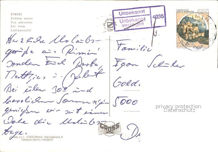 old postcard Rimini Strand Fliegeraufnahme postalisch gelaufen Erhaltung siehe scans