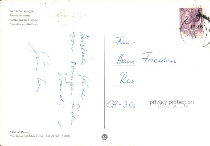 old postcard Rimini Strand Fliegeraufnahme Hotel Ristorante Nettuo postalisch gelaufen Erhaltung siehe scans