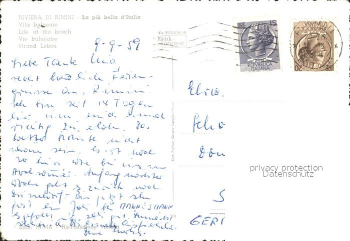 old postcard Rimini Strand Segelboot postalisch gelaufen Erhaltung siehe scans