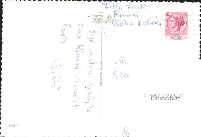 old postcard Rimini Teilansichten Hochhaus Segelboot postalisch gelaufen Erhaltung siehe scans