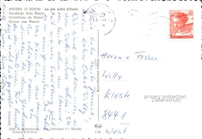 old postcard Rimini Veduta aerea Spiaggia Il porto postalisch gelaufen Erhaltung siehe scans