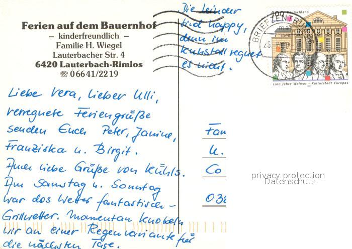 73660412 alte Postkarte Rimlos Ferien auf dem Bauernhof Gaesteraum Terrasse Ausreiten postalisch gelaufen Erhaltung siehe scans [FriedD77] KatCode: 11110006535011